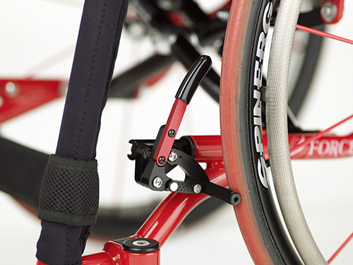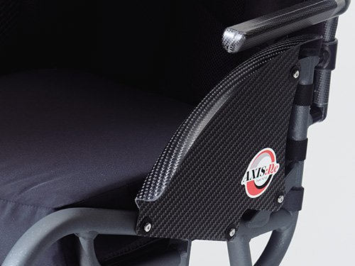 カーボン製のサイドガードは、軽さだけでなく、車いす全体を引き締まった印象に変えてくれます。 カーボン製のグリップRとアームサポートは、その質感が手に心地よく伝わり、まるで車いすが語りかけてくるようです。 所有する喜びを感じていただくために、細部にこだわったアイテムです。 また、カーボンコアキャスターホイールは、コアの変形が少ないため転がりが良く、ワイドタイプなので走破性も向上します。